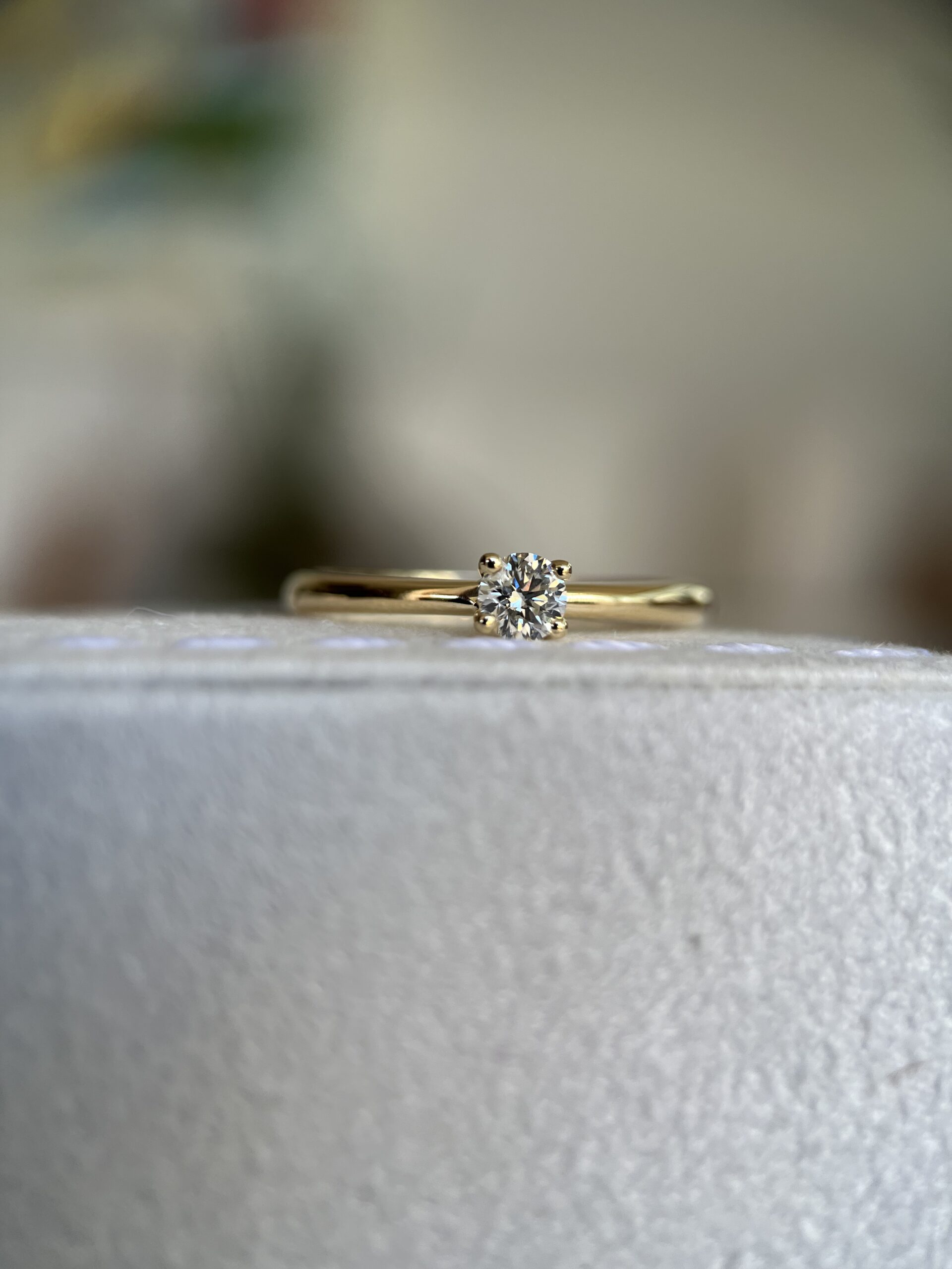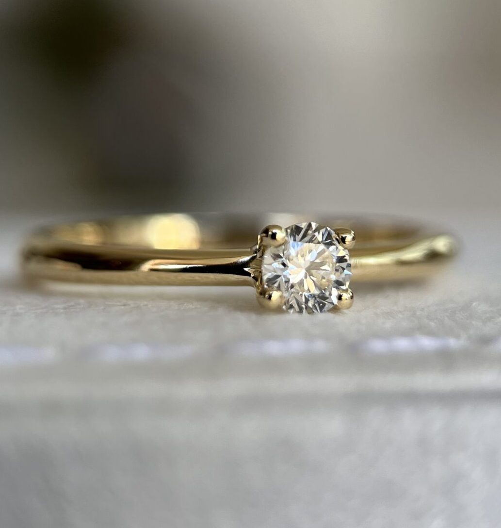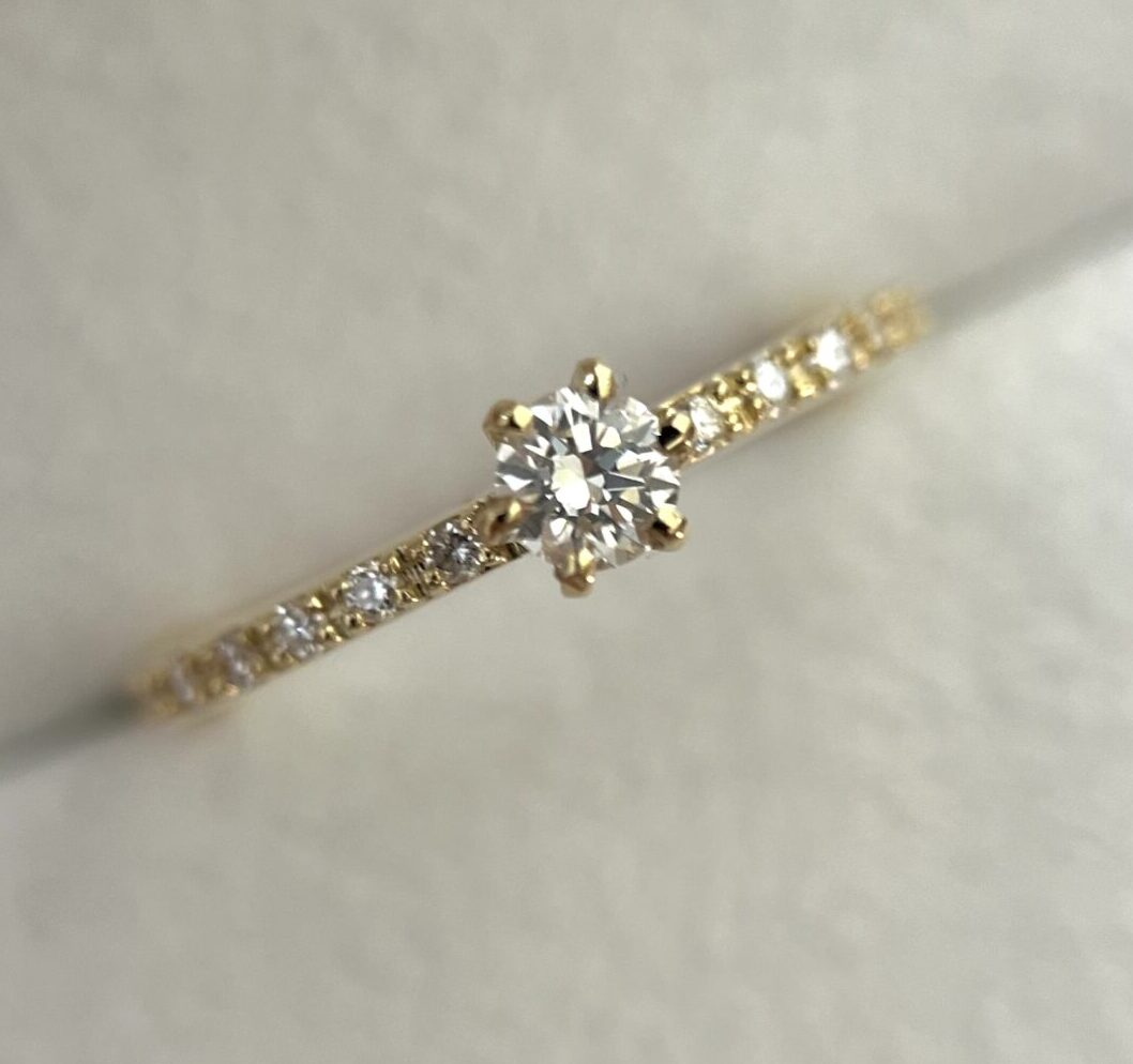 Anel de ouro 18k amarelo com diamantes laterais.