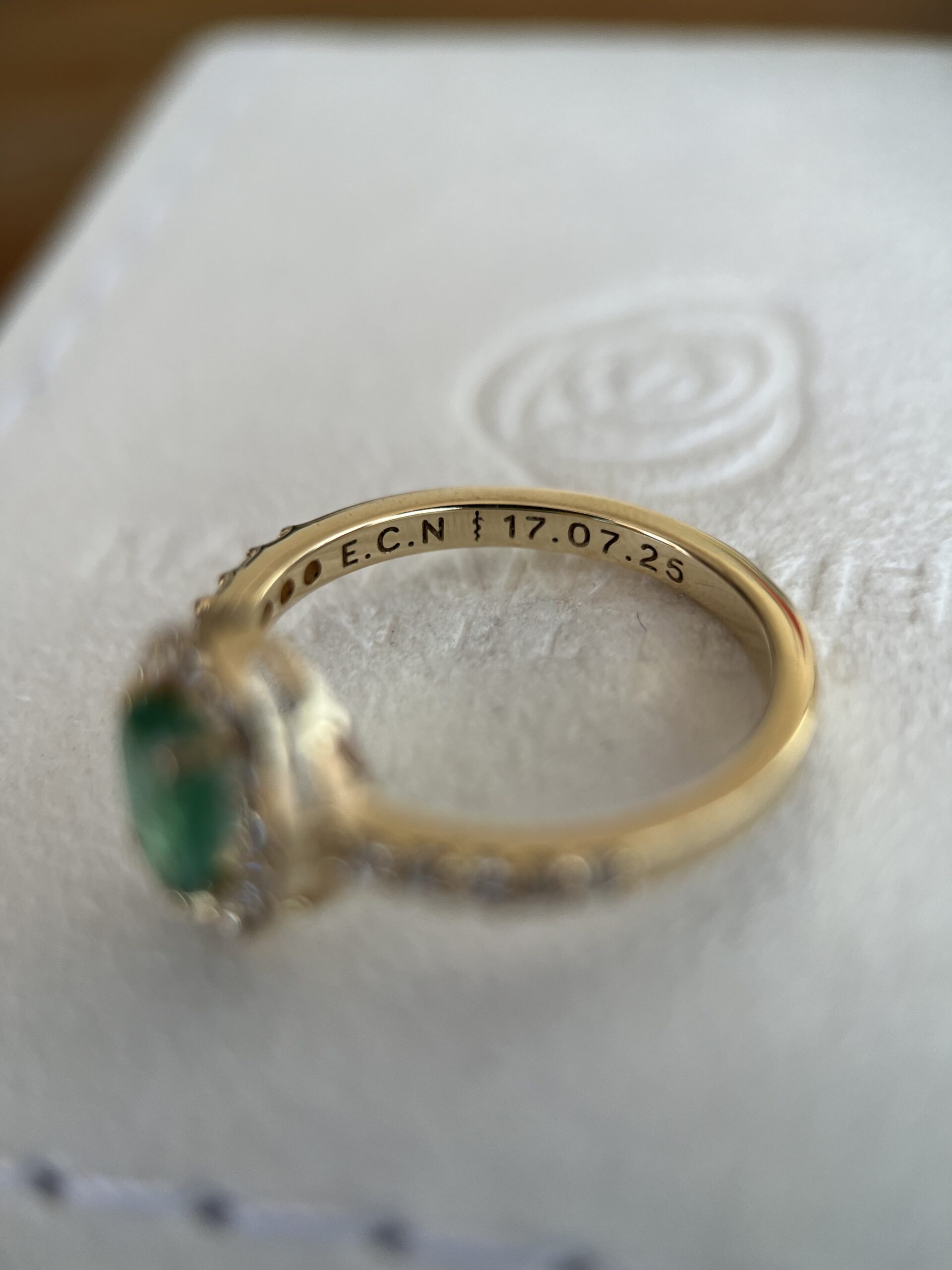 O interior permite personalização com frases, datas ou símbolos gravados a laser.