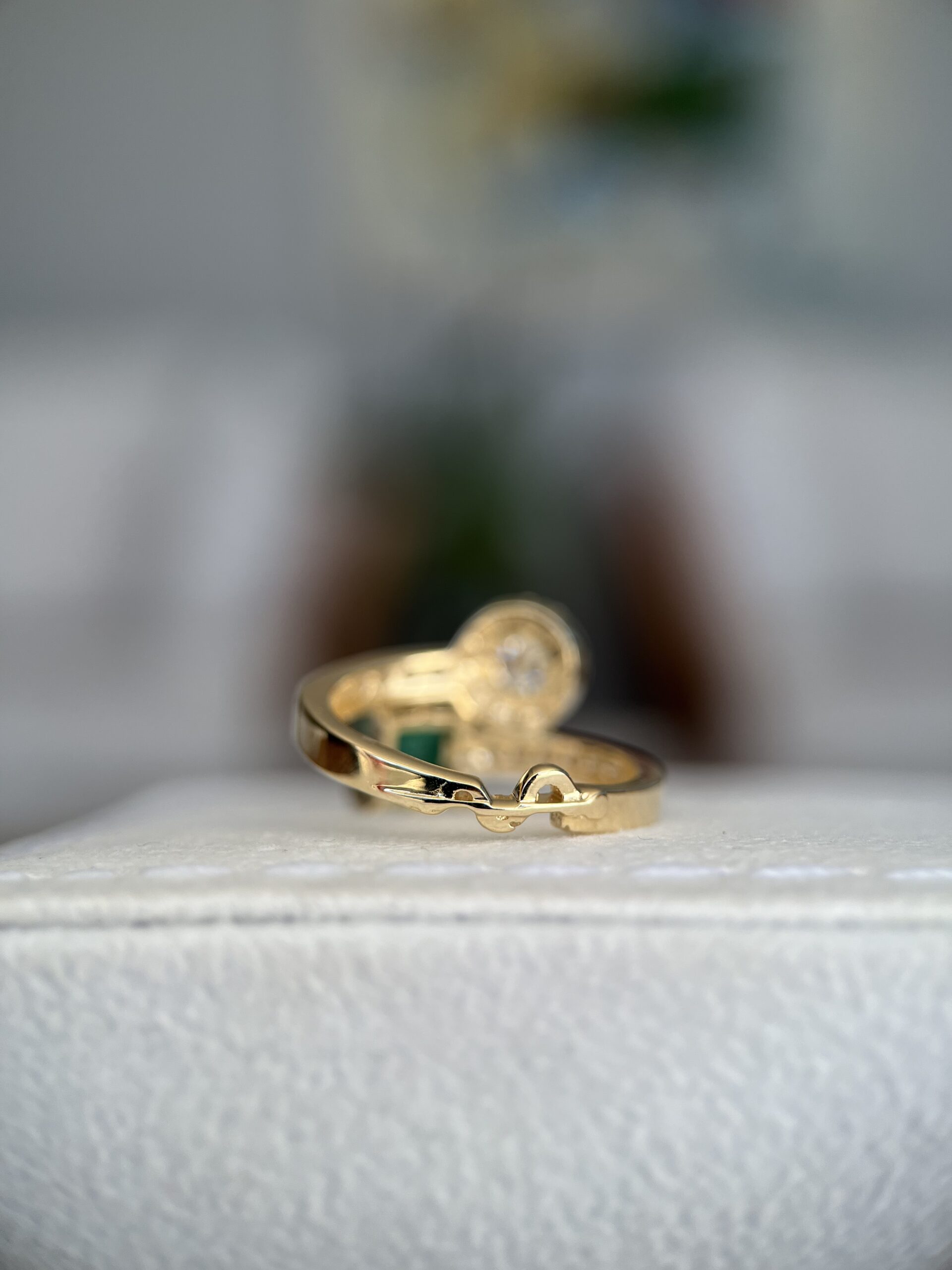 Anel com Esmeralda Central e Diamantes Laterais (0.36 ct)