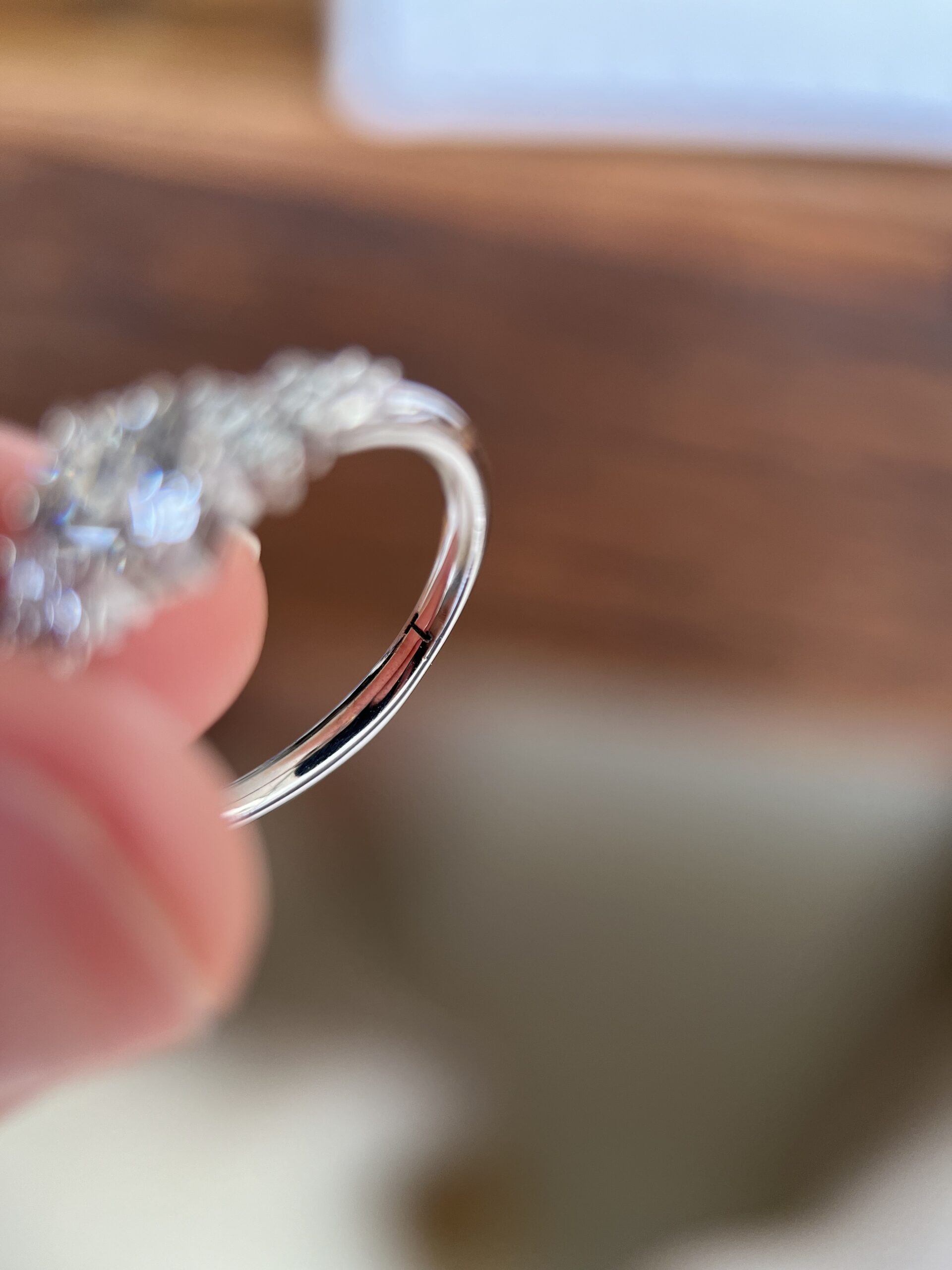 O aro é um espetáculo à parte: delicadamente trabalhado com diamantes de tamanhos variados, formando um verdadeiro mosaico de luz, que cria movimento, intensidade e um efeito cintilante único, como um céu estrelado em constante dança.