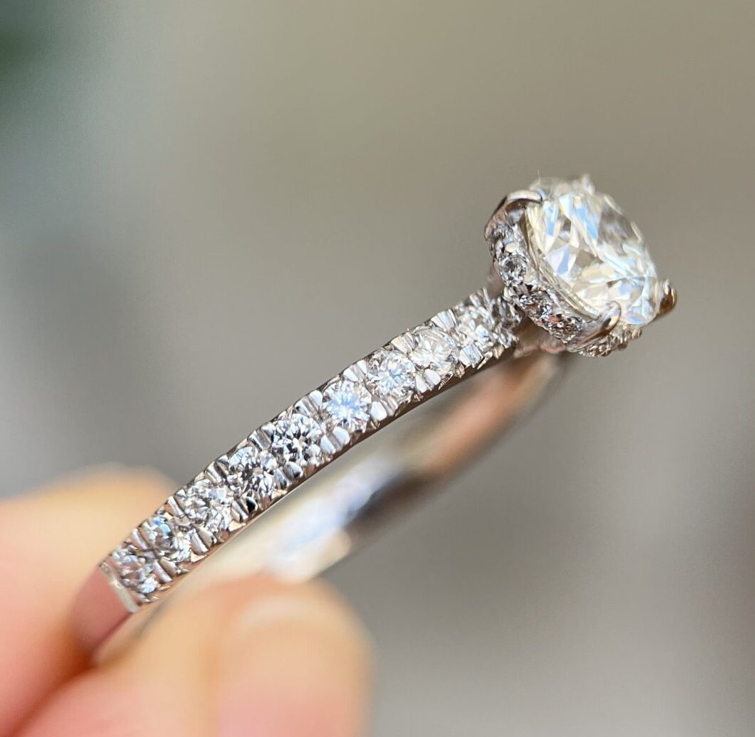 Com 26 diamantes minuciosamente cravados, este anel traz no centro um diamante de 12 pontos em cravação inglesa, envolto por uma delicada moldura de diamantes que ampliam sua presença. O design “illusion” cria o efeito visual de uma pedra central maior, realçando o brilho e a imponência da peça. Disponível em ouro branco ou amarelo 18K, é a combinação perfeita entre técnica refinada e elegância atemporal.
