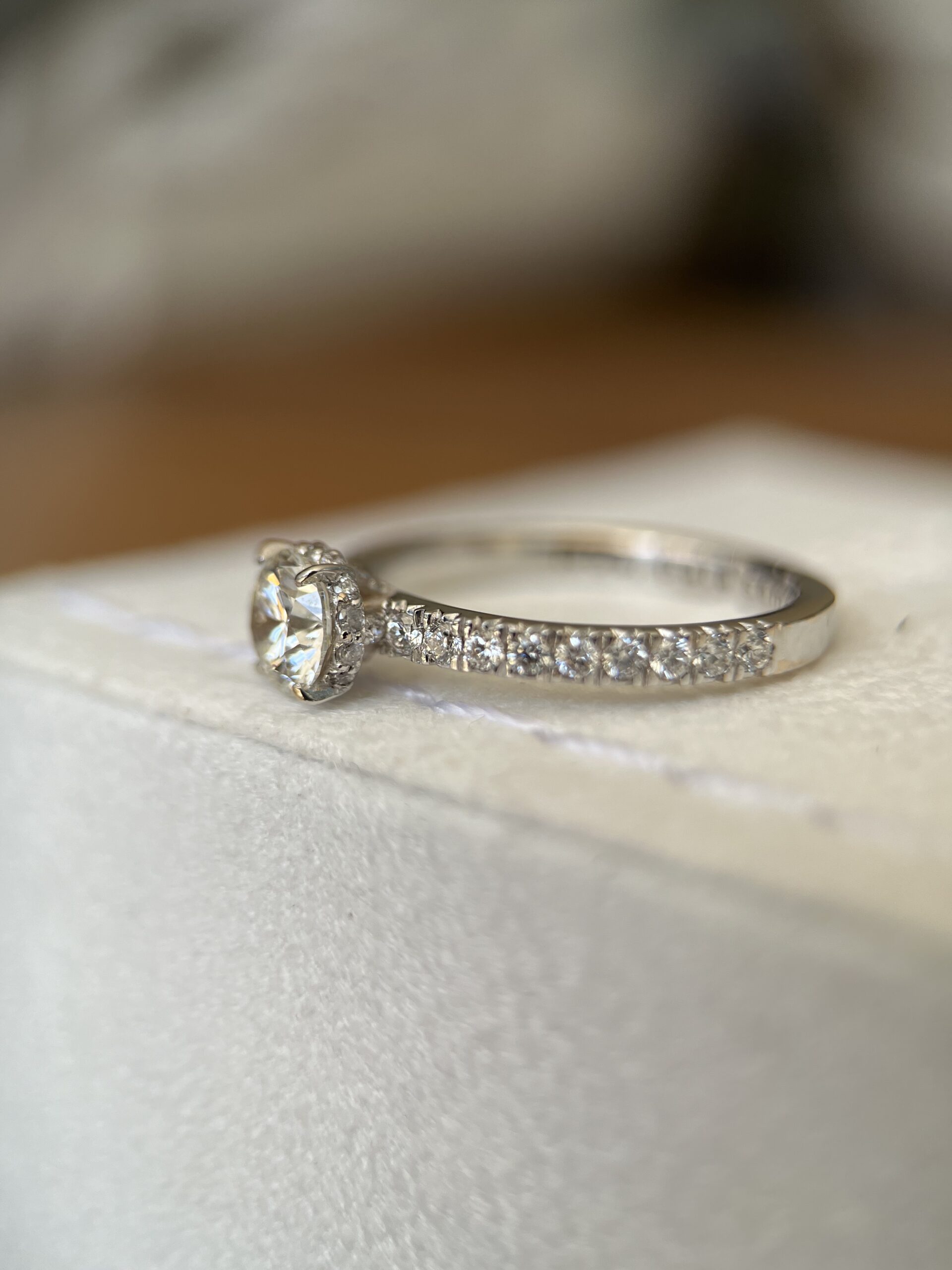 É um anel que irradia charme e presença, ideal para quem deseja uma joia que une elegância, tradição e um brilho inesquecível. Acompanha certificado GIA e ainda oferece a possibilidade de personalização interna, tornando-o verdadeiramente único para quem o usa.
